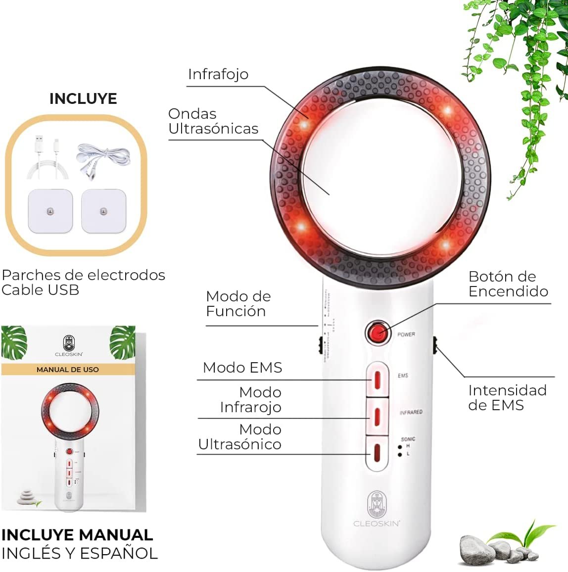 Máquina de cavitación corporal. Masajeador ultrasónico 3 en 1.